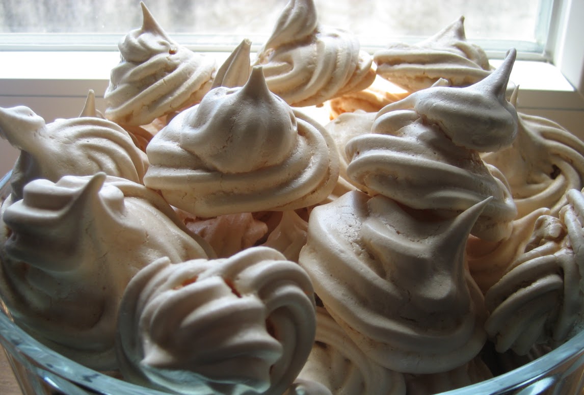 Pré-aquece-se o forno a 120ºC. Batem-se as claras em castelo bem firme (devem bater-se as claras durante algum tempo). Pode juntar-se às claras umas gotas de sumo de limão. Vai-se juntando o açúcar aos poucos, sempre a bater.